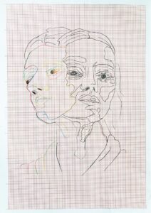 Fettkohle und Bunststift auf Papier