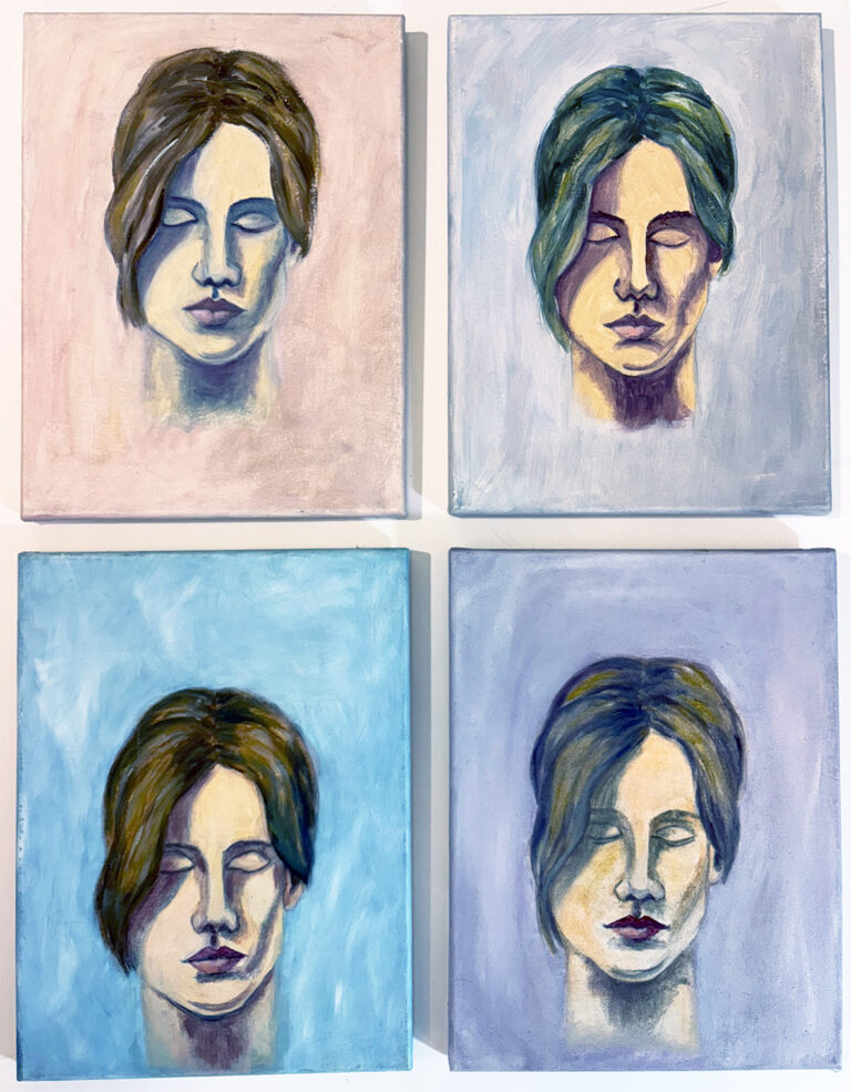 Bilderrahmen Holz, Strukturtapete, Alufolie, Gips, Ultramarin Blau, Hirschgeweih