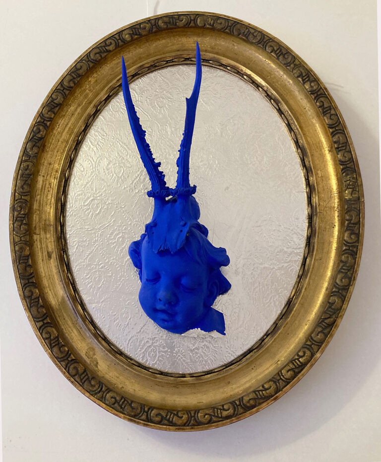 Holz, Gips, Ultramarin Blau, Hirschgeweih
