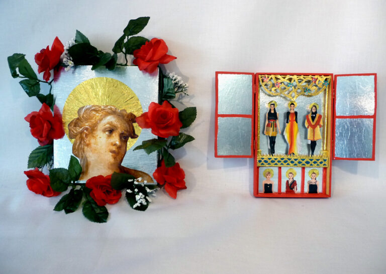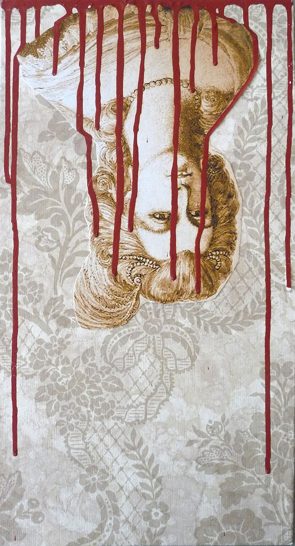 Strukturtapete, MDF, Acrylfarbe Fotokopie