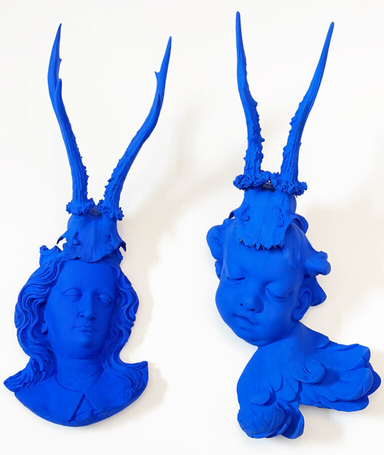 Blaue Engel, Gips, Ultramarin Blau, Hirschgeweih