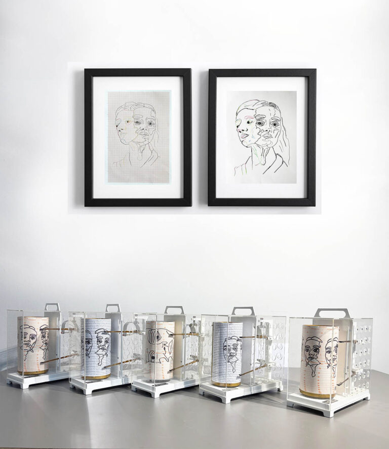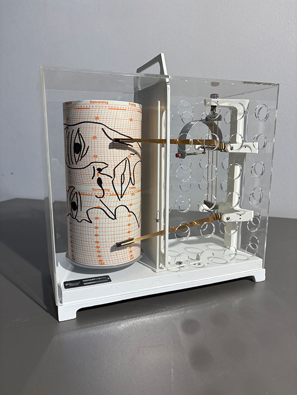 Intelligenz-Geühl-Messung von KI mittels Synaisthema-Nous-Graphen, Thermohygrographen, Fasermarker auf Papier,
