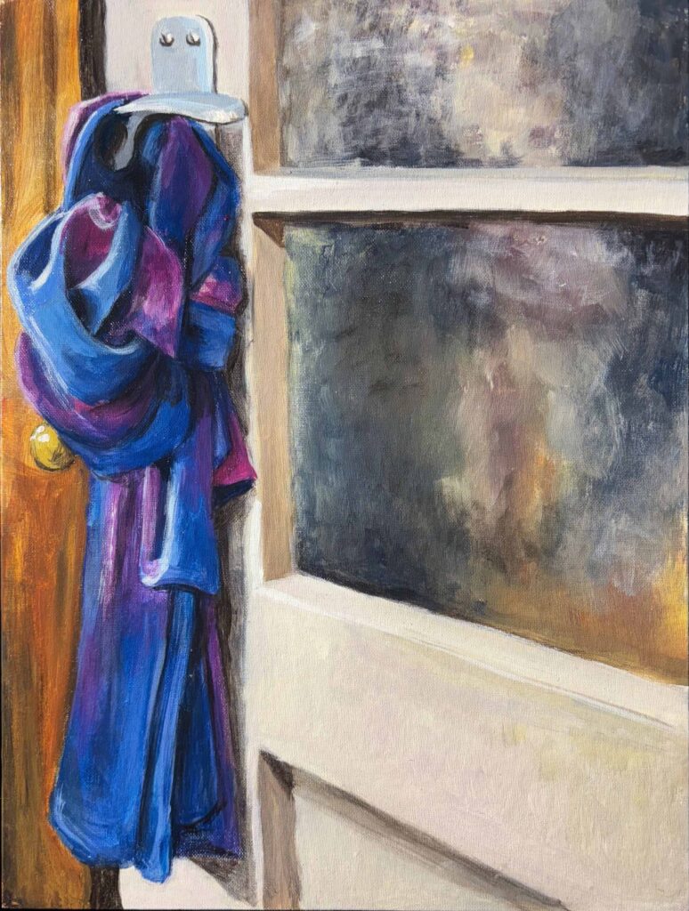 Der blaue Schal, Acryl auf Karton,