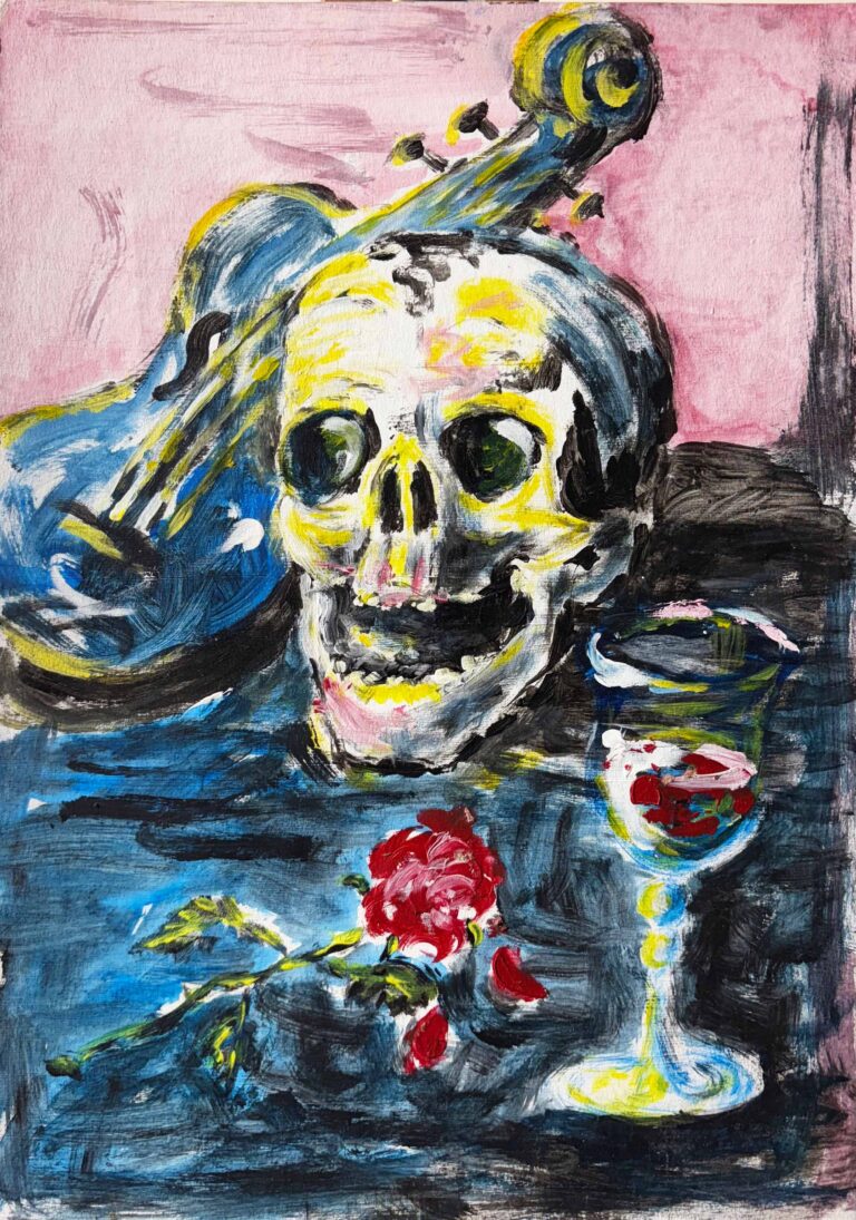 Vanitas, Acryl auf Karton,
