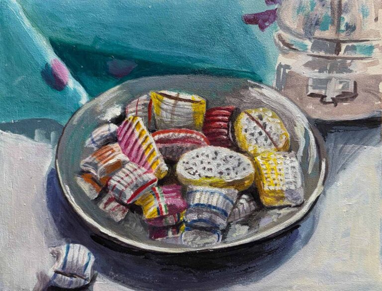 Seidenzuckerln, Acryl auf Karton,