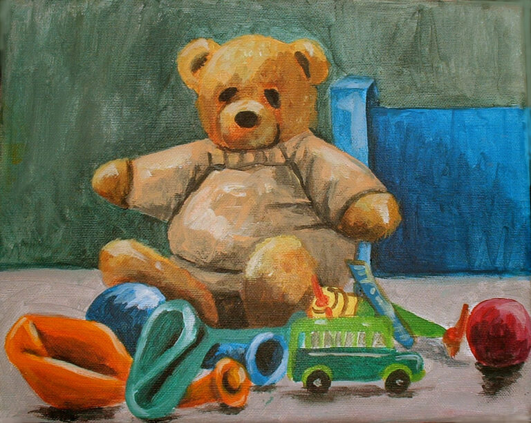 Spielzeug, Acryl auf Karton,